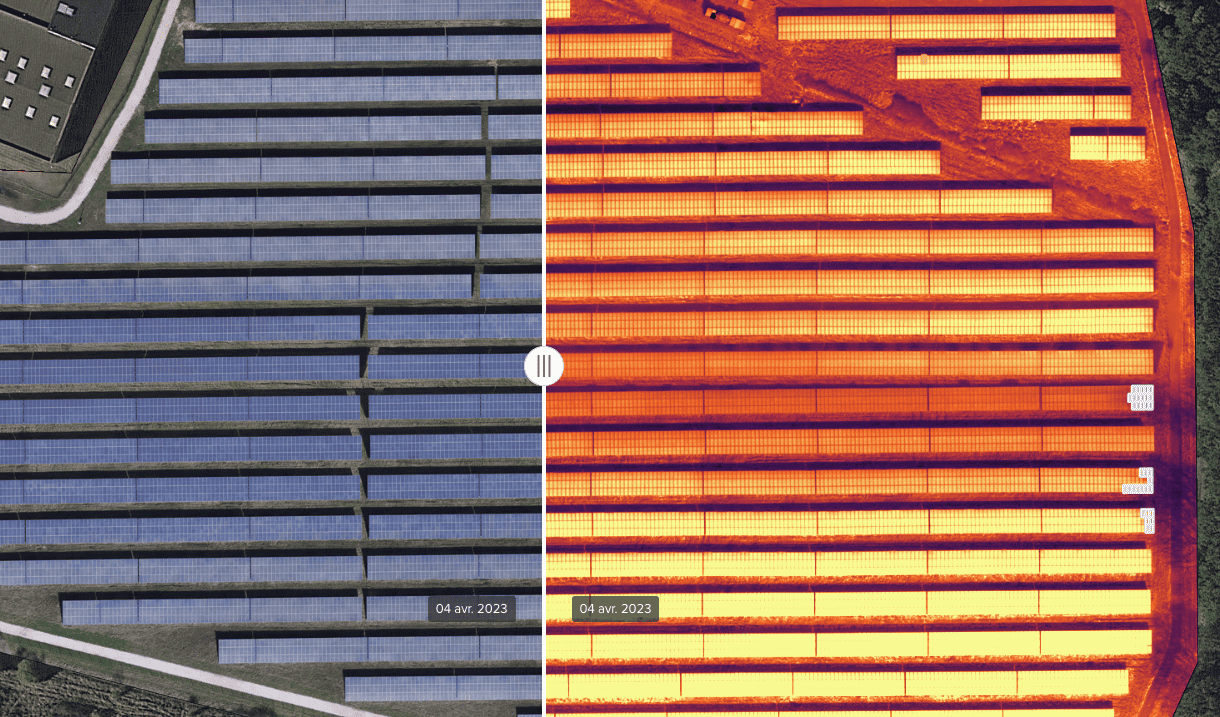 - Le drone survole la zone à inspecter en capturant des images infrarouges. Chaque pixel représente une température, traduite par une palette de couleurs. Les données thermiques sont ensuite analysées et interprétées pour produire un diagnostic précis et documenté.
